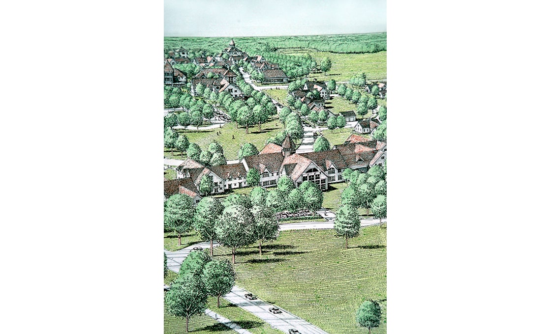 Dodson & Flinker completed this masterplan for redeveloping a 160 acre section of an approximately 1,000 acre former state mental institution into a new village center. Extensive areas of prime farmland, over 90 existing buildings — some of them historic — as well as location of a dangerous highway intersection within the project area all contributed to a complex and challenging design problem. The project included the supervision of a multi-disciplinary team including market analysts, architects and engineers. The Masterplan calls for major sections of the property to placed in agricultural and forest land preservation with remaining areas to be developed for affordable, rental and market rate housing, congregate elderly facilities and commercial development. Renovation of the existing historic buildings was also recommended and accommodated in the Masterplan.