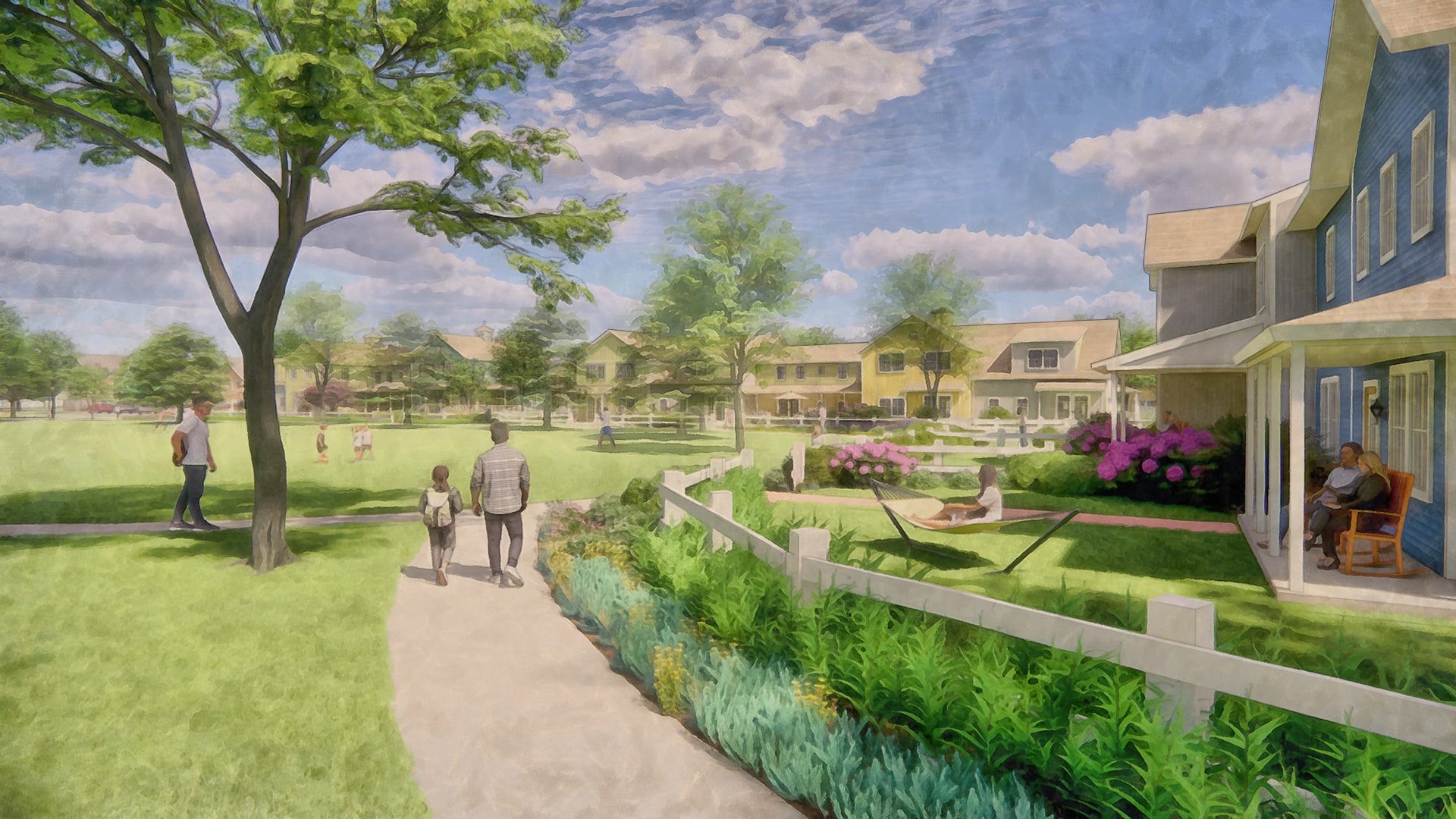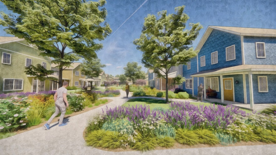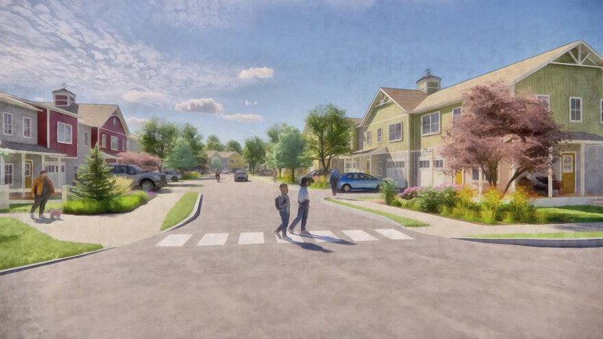 The Town of Southampton hired Dodson & Flinker and PVPC to create a plan for 45 acres of land recently acquired by the Town. The proposed plan sites a public safety complex, senior center, commercial space, 45 affordable townhouses, and a trailhead for a rail trail. The arrangement of buildings, roads, parking and open spaces carefully balances public and private spaces, while maximizing the efficiency of infrastructure, preserving a forest buffer to the Manhan River, creating a walkable neighborhood, and enabling the plan to be implemented in phases by different public and private entities.