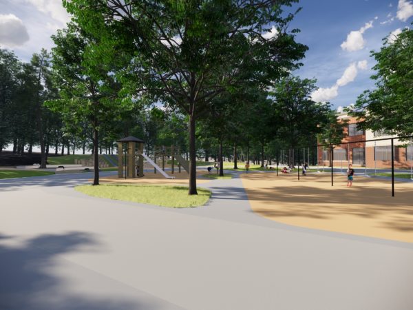 Dodson & Flinker is collaborating with T2 Architecture on the design of a new campus for Millbury, MA’s Raymond E. Shaw Elementary School, which will serve 550 students in grades 3-6. The project is now in the final stages of schematic design under the Massachusetts School Building Authority (MSBA) program. Dodson & Flinker’s proposed design weaves in play and outdoor classroom spaces throughout the landscape, creating opportunities to expand outdoor experiences beyond recess. In addition to a traditional playground, the design includes a traversing wall and low-ropes elements to be used by PE classes, and swings to be used for physical and occupational therapy. Taking advantage of the school’s 150-acre property, the proposed landscape will also feature trails and outdoor classroom spaces designed to immerse students in wetlands and woodlands. The design team continues to work closely with school staff and community members for community outreach through the summer. The Town will vote on funding the next phases of design and construction in fall 2019.