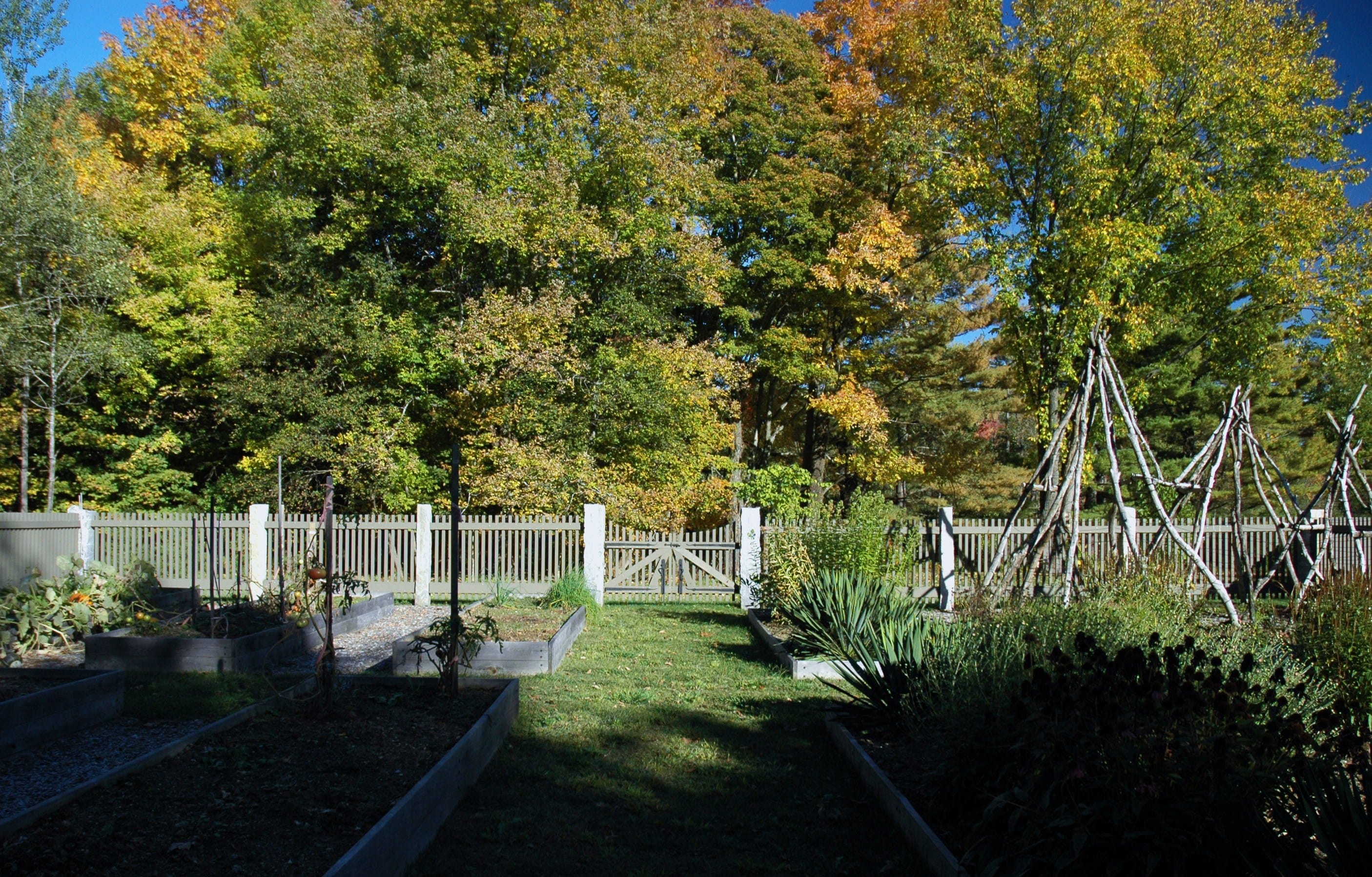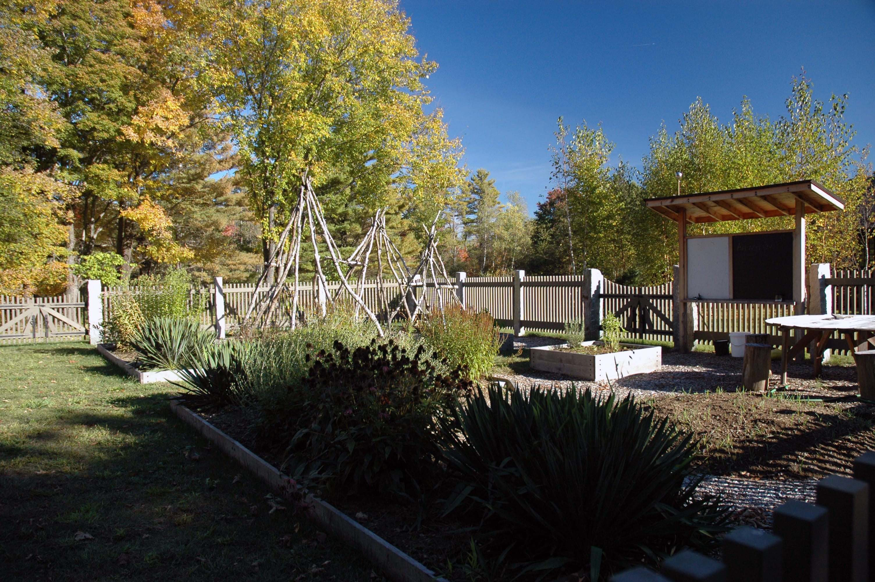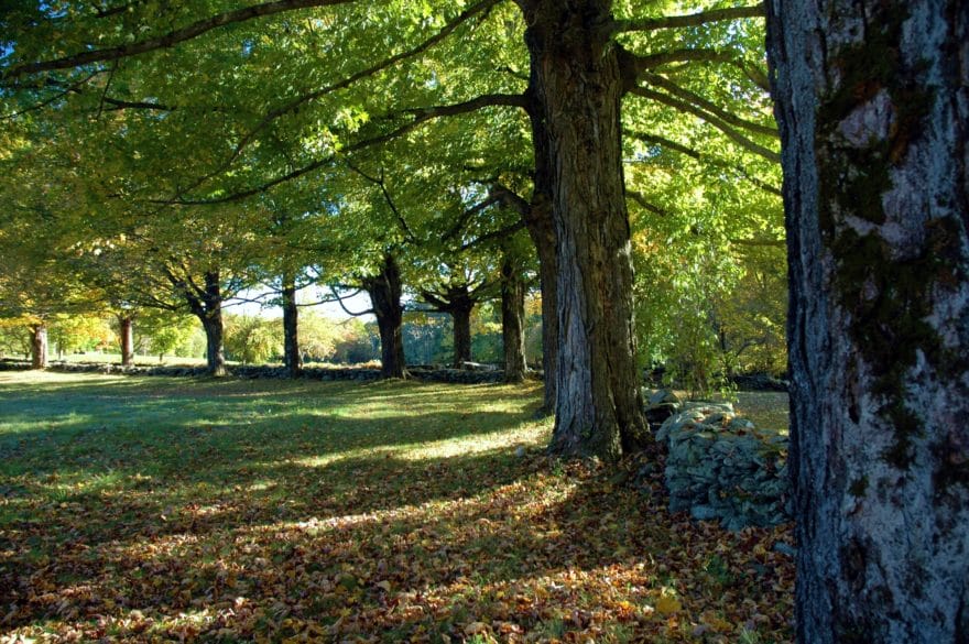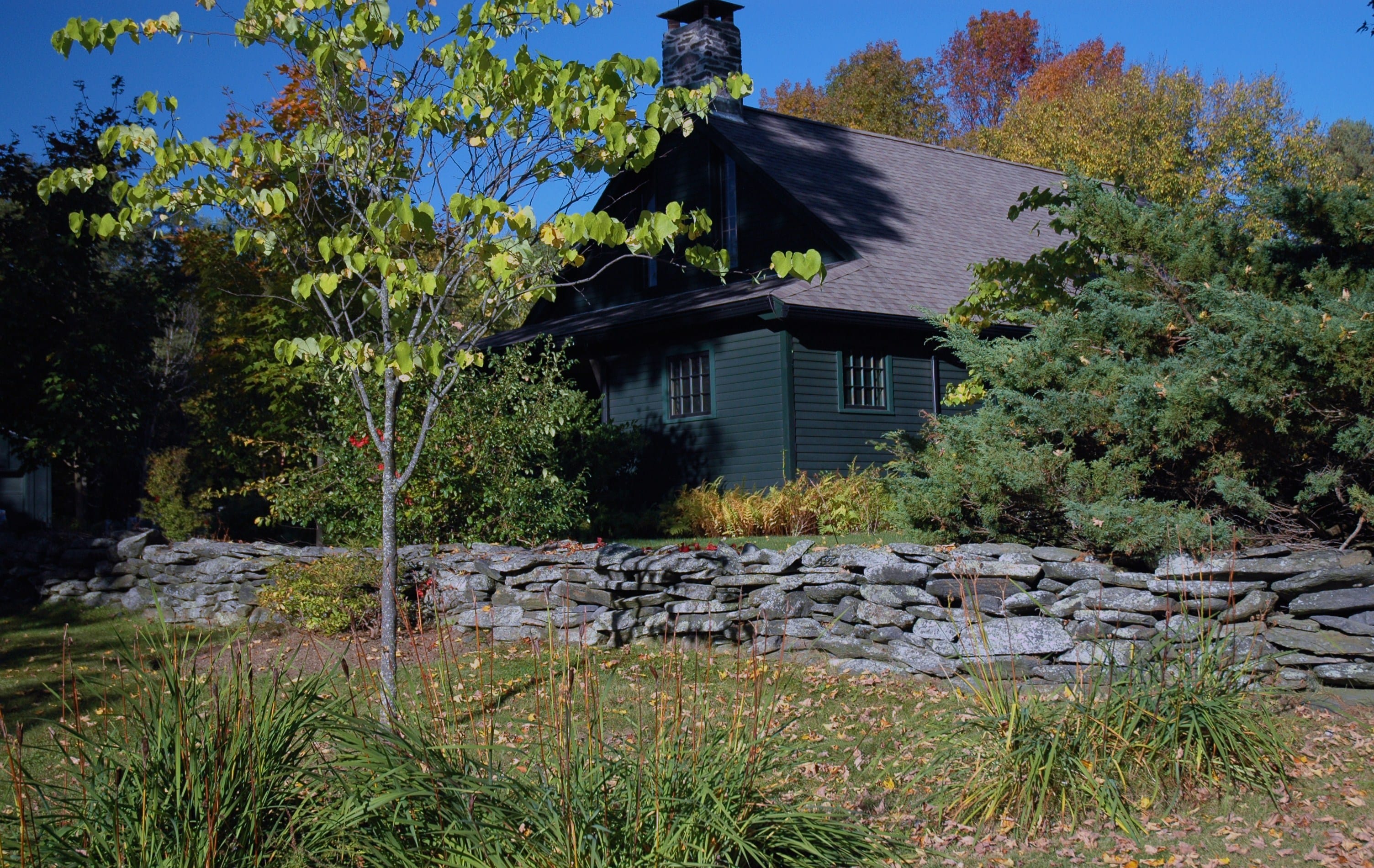 Site plan, construction documents, bidding and construction observation for an historic garden landscape surrounding a renovated hunting lodge in rural western Massachusetts. Historic components of the landscape, including 150 year-old sugar maples, stone walls, meadows and fields were preserved and restored. Extensive new plantings were installed that blended with the history and ecology of the site. Views to surrounding fields and woodlands were enhanced while screening vegetation was planted to provide privacy from a nearby road and residence. New stone walls, pathways, gates and terraces were built to create transitions from the house to the outlying rural landscape. A new vegetable garden, a children’s garden and a fruit tree orchard were included in the plan. Driveways and parking areas were realigned and resurfaced to create clearer circulation and to eliminate excess paving. New plantings included flowering native trees, shade trees, a grove of paper birch. Specimen White Oaks and disease resistant American Elms and American Chestnuts were planted to create landscape focal points.