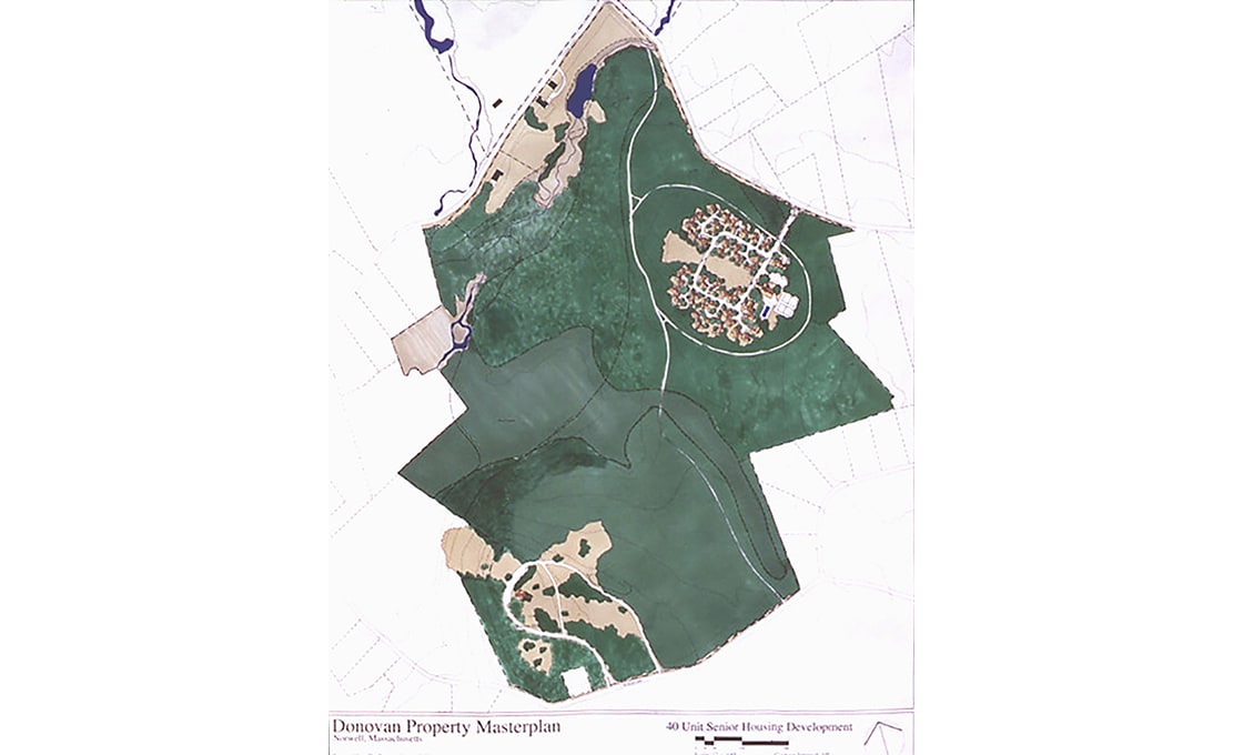 When the Town of Norwell bought the 175 acre Donovan Estate they knew that part of the property would have to be developed to fund the project. Dodson & Flinker conducted a public participation process to identify appropriate uses for the site, and developed a masterplan for conservation and development, including a plan for a senior housing community on 45 acres of the site. Dodson & Flinker developed a detailed development RFP and worked with the Planning Board to select a developer for the property. The firm also worked with Attorney Mark Bobrowski to develop revisions to local bylaws necessary to allow the plan to proceed. As a result of this extensive pre-planning and pre-approval process, a developer purchased the 45 acre development site for more than twice what the town paid for the entire Donovan Estate. Construction on the new development only disturbed some 15 acres of the property.