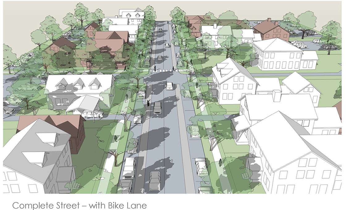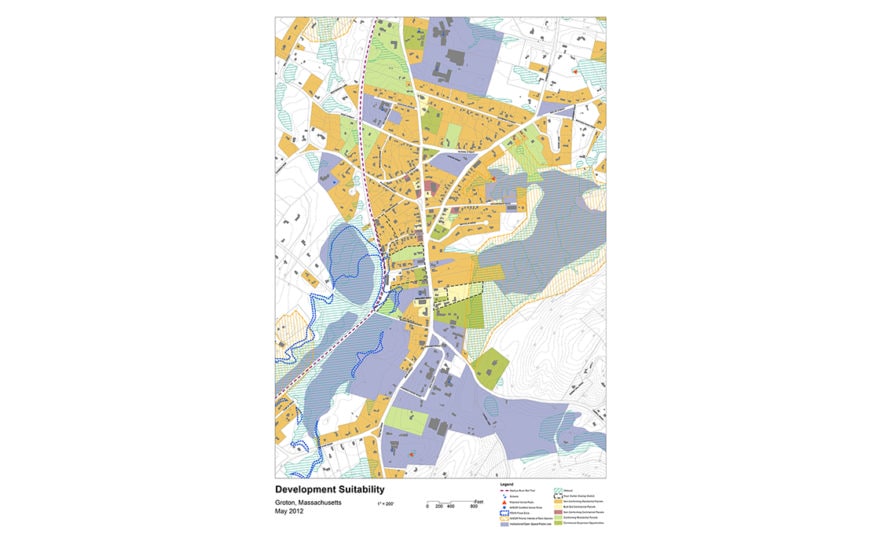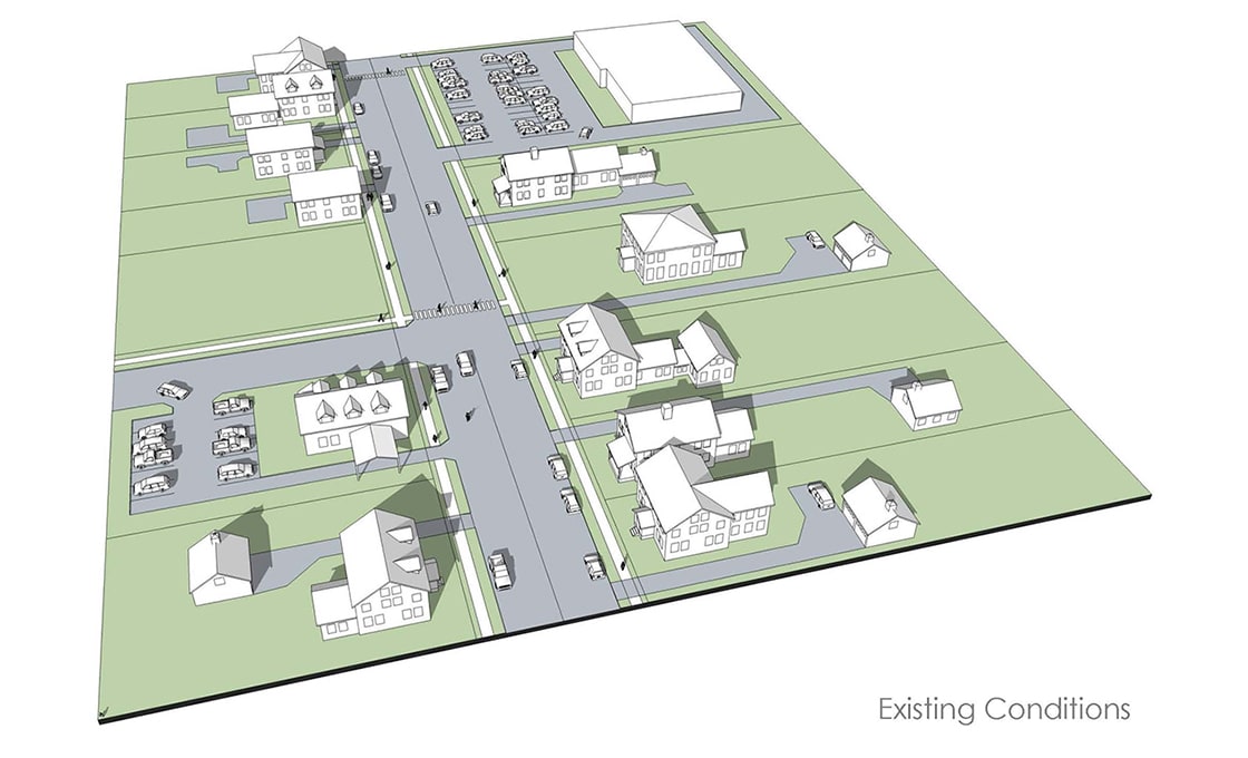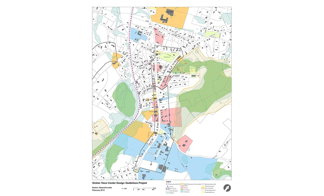 Groton is a traditional rural New England community striving to preserve the unique historic and cultural character of its village center. Dodson & Flinker worked with the town to assess existing conditions, identifying what specific elements of space and design define the town character. Using these standards, we created a set of illustrated guidelines showing how (re)development could occur within the existing fabric. The town is currently deciding how to pursue a zoning change that would regulate the proposed design guidelines.