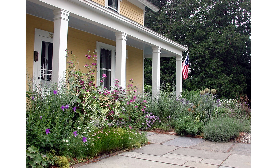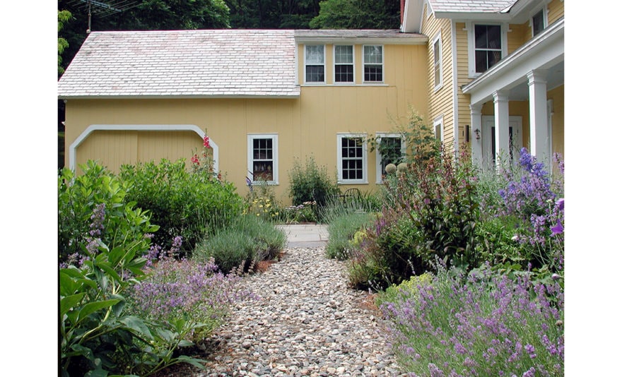 Located in Ashfield’s Historic Plain District, the Ouimet Gardens were designed with the goal of providing a contemplative perennial garden that fits its rural surroundings. The current owners of the elegant 1840s building wanted to create outdoor gathering spaces and room for perennial gardens as well as more pleasant views from their indoor living spaces.