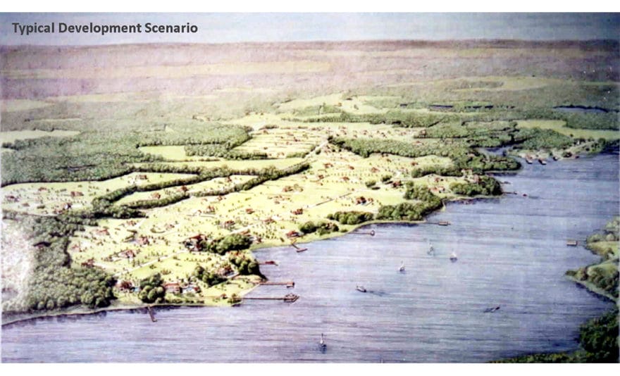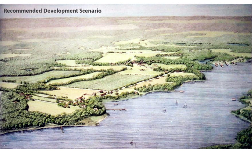 Concerned about recently proposed, intensive riverfront development projects such as Haymount, The Chesapeake Bay Foundation hired Dodson & Flinker to develop guidelines for the creation of a regional greenbelt interspersed with small-scale, environmentally sustainable projects in the Rappahannock River basin. Detailed plans were developed for three actual sites along the river, demonstrating existing conditions as well as typical and recommended development patterns. Recommended development featured the creation of the regional greenbelt through open space development techniques, extensive riverfront buffer zones, traditional development patterns and architectural styles and environmental waste management technology. The results of the project were published by CBF in their award-winning 1996 manual: A Better Way to Grow: For More Livable Communities and a Healthier Chesapeake Bay.
