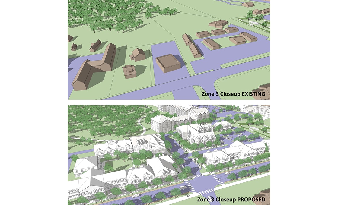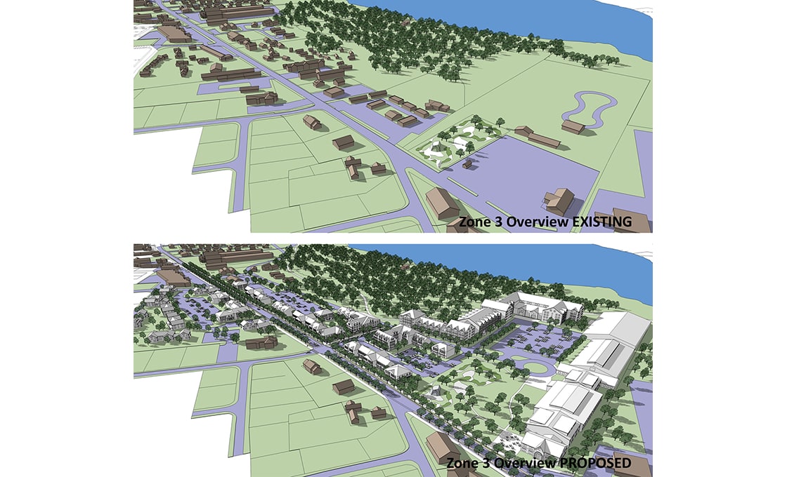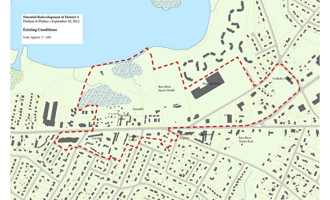 Dodson & Flinker assisted Horsley Witten Group with a new zoning bylaw for the Route 28 corridor in Yarmouth, Massachusetts. Existing development patterns include hotels, restaurants, box stores and entertainment venues spread along the strip with ample parking and difficult pedestrian access. Residential neighborhoods surround the strip. A proposed development prompted the town to consider a new zoning bylaw that would increase density and promote an active, pedestrian-oriented streetscape. Our visualization work helped residents understand buildout scenarios under the proposed zoning and contributed to the passage of the new bylaw with a strong majority at an October 2012 Town Meeting.