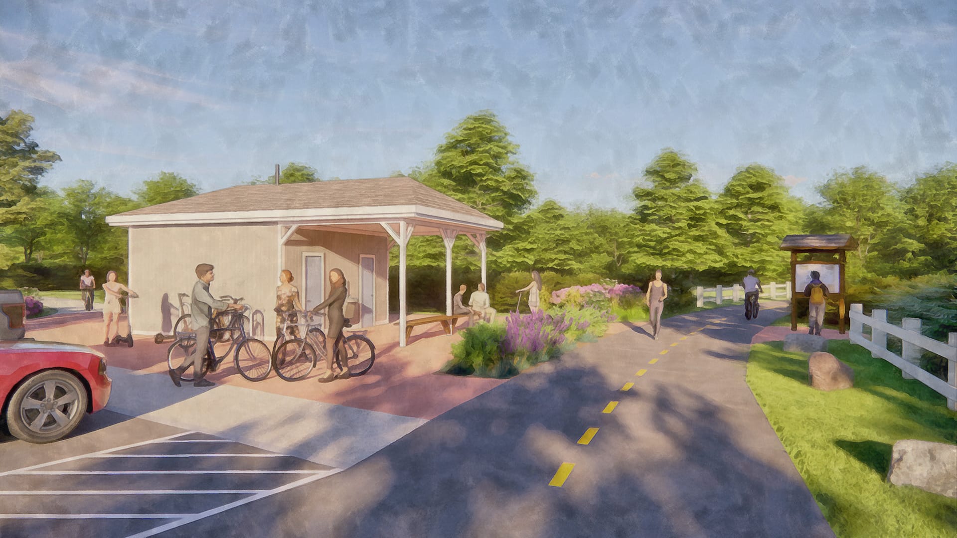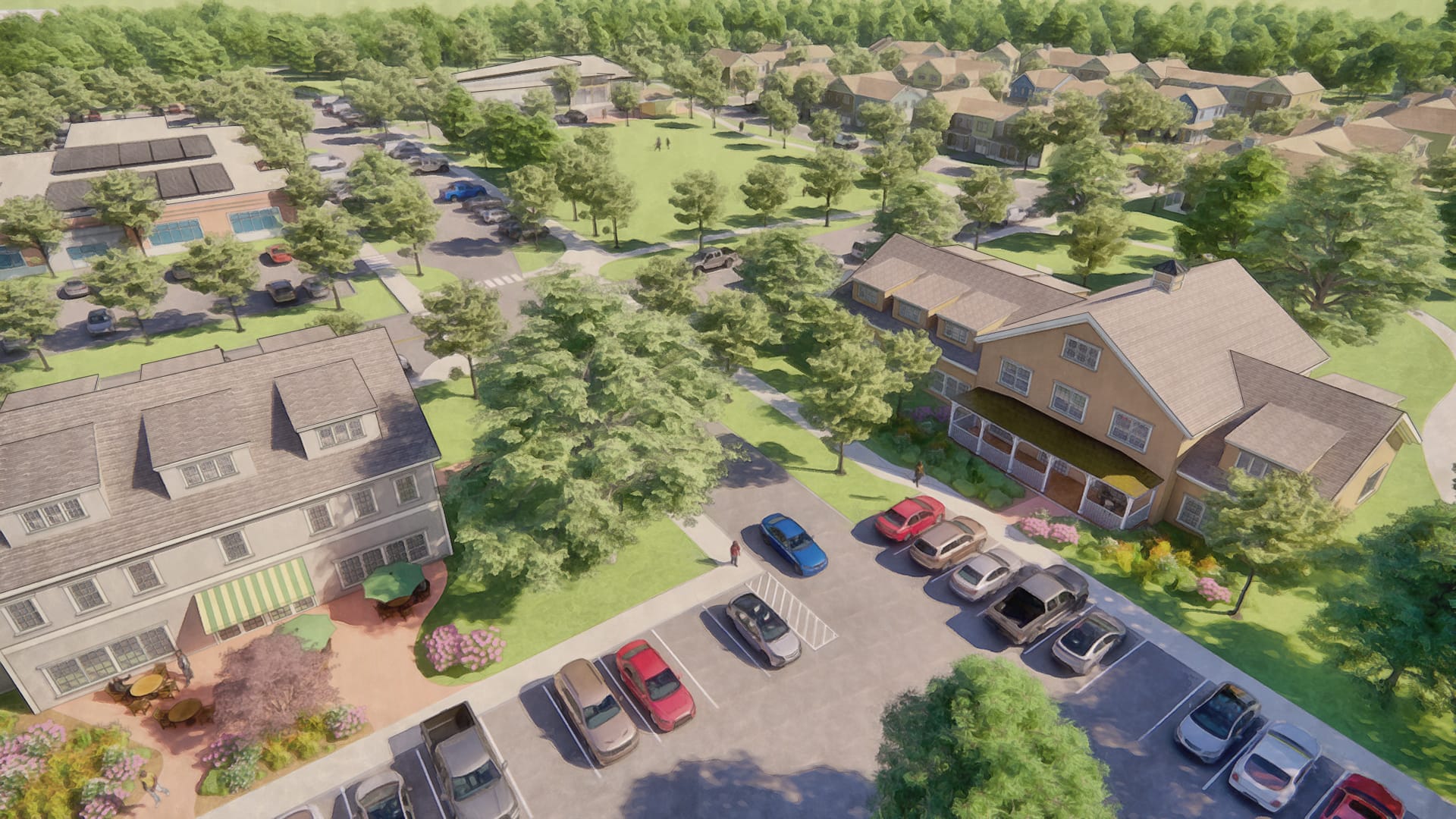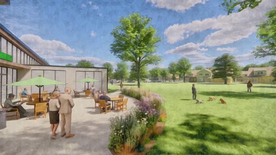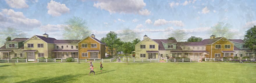 The Town of Southampton hired Dodson & Flinker and PVPC to create a plan for 45 acres of land recently acquired by the Town. The proposed plan sites a public safety complex, senior center, commercial space, 45 affordable townhouses, and a trailhead for a rail trail. The arrangement of buildings, roads, parking and open spaces carefully balances public and private spaces, while maximizing the efficiency of infrastructure, preserving a forest buffer to the Manhan River, creating a walkable neighborhood, and enabling the plan to be implemented in phases by different public and private entities.