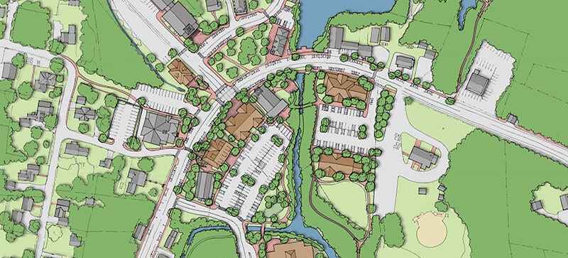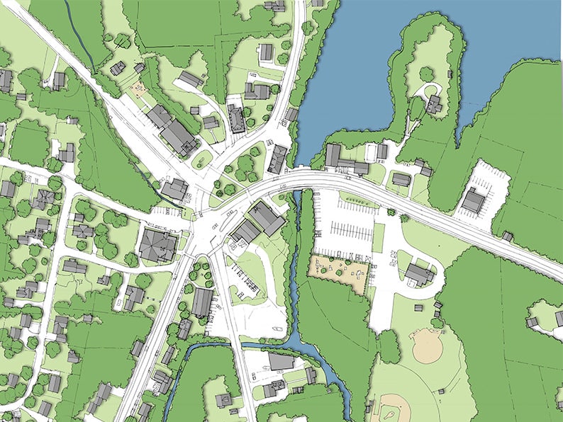 Dodson & Flinker worked with the town of Upton, MA on a revitalization plan for its town center. Upton’s center has served as its cultural and community hub since the town was settled in 1728, and is home to a historic Town Common and numerous historic buildings, including two listed on the National Historic Register. Like many small-town New England town centers, however, Upton Center has had to redefine its role in the community as long-term economic, transportation, and social trends have shifted activity towards commuter roads and regional shopping centers. The D&F team facilitated a series of Working Group meetings and a public visioning workshop to engage the community in shared fact-finding and idea generation. The process addressed design issues such as parking, pedestrian and vehicular circulation, as well as strategies for developing the local economy and creating vibrant community spaces. Dodson & Flinker also served as the landscape architect for a new library, senior center, and community center, which is located in the town center–a key recommendation of the vision.