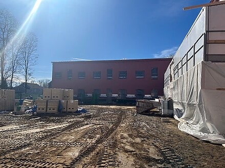 D&F provided the site design for a new elementary school in Westfield, MA. The bustling construction site is now 50% complete and we visited to check on the progress. It was exciting to see the framework for the future K-1 playground courtyard with huge windows to connect the indoor and outdoor spaces.